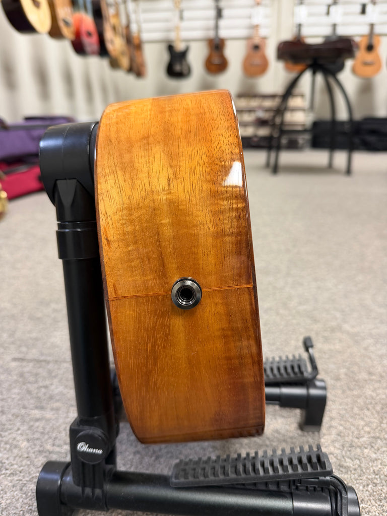 This is a pre-loved Grand Tenor that is in excellent condition with no signs of wear at all. A MiSi Rechargeable Pickup has been added ($200 value). Here's your chance to save on a great koa tenor from Romero Creations.