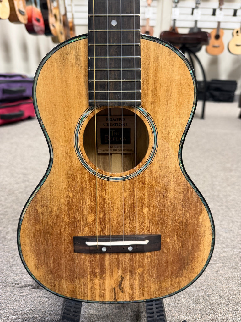 Romero Creations Ukuleles are definitely one of our best-selling brands, and for good reason. All of the Romero ukes play great and have a super comfortable neck profile. Master luthier Pepe Romero handcrafts custom instruments for players and collectors around the world. The Replica is the production replica of his custom tenor ukulele. These beauties are all solid wood and full of rich, robust tone. You won't be disappointed with the quality of these instruments. Comes with a Romero Deluxe Case!