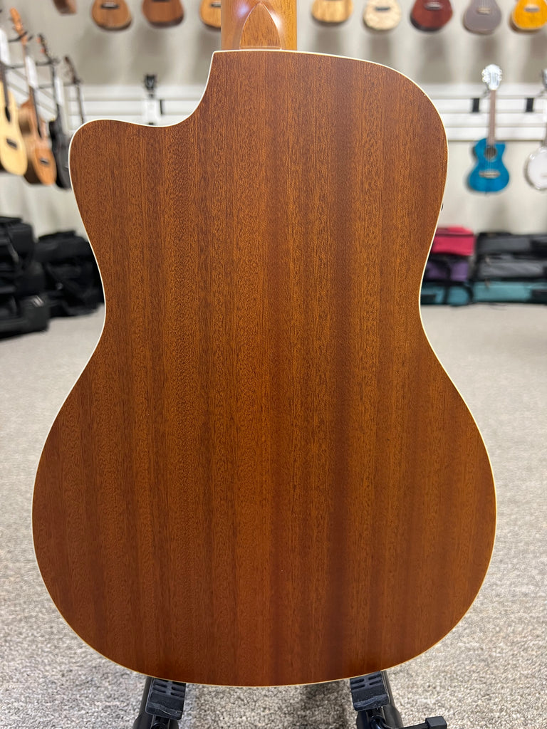 This classy looking baritone from Ohana features a solid mahogany top with ivory colored binding. The tone is big, warm, and sweet and the action is perfect making it easy to play for hours. The cutaway gives you easy access to the upper frets. It also comes equipped with a built-in pickup with EQ and tuner so you're ready for the stage or studio!