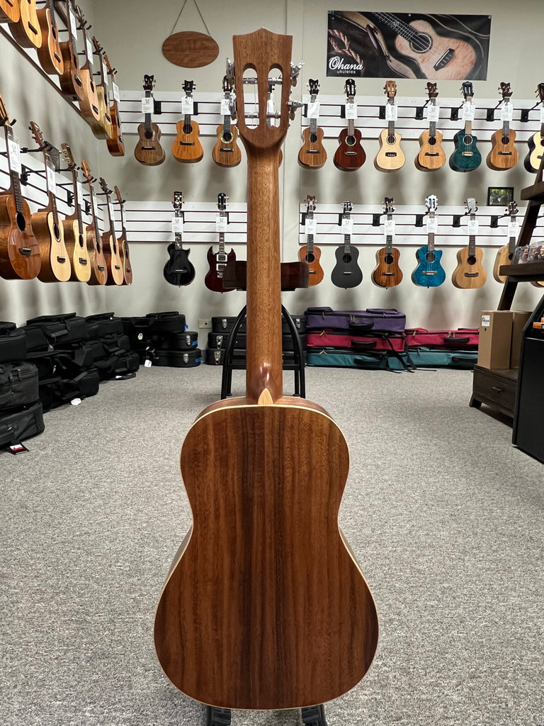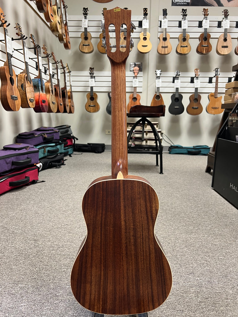 The Kala KA-SA-B Solid Acacia Baritone Ukulele is a beautifully crafted instrument that combines striking aesthetics with rich, resonant sound. Its all-solid striped acacia body offers a tonal warmth and clarity reminiscent of koa, making it ideal for both strumming and fingerstyle playing.