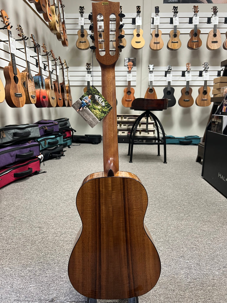 The ukulele's unique 8-string setup—tuned d-D-g-G-b-b-e-e—offers a lush, chorus-like effect, enriching both strumming and fingerstyle techniques. Equipped with Aquila Super Nylgut® strings, it delivers a bright and full sound, making it an excellent choice for stage performances. The Graph Tech NuBone® nut and saddle, along with chrome inline tuners, provide precise tuning stability.