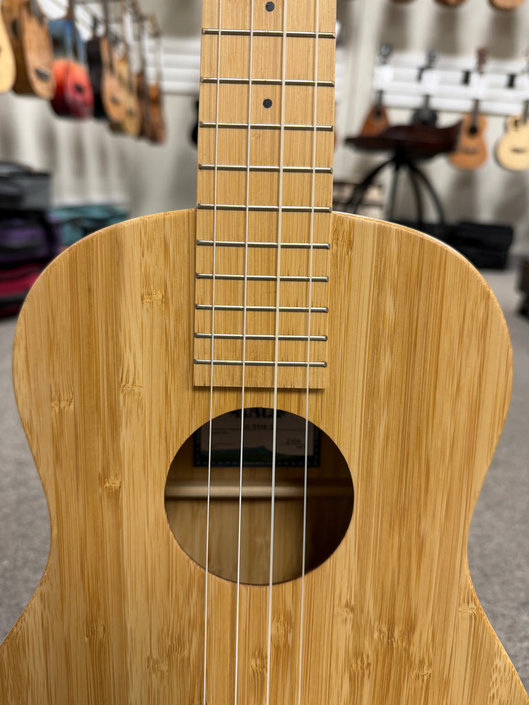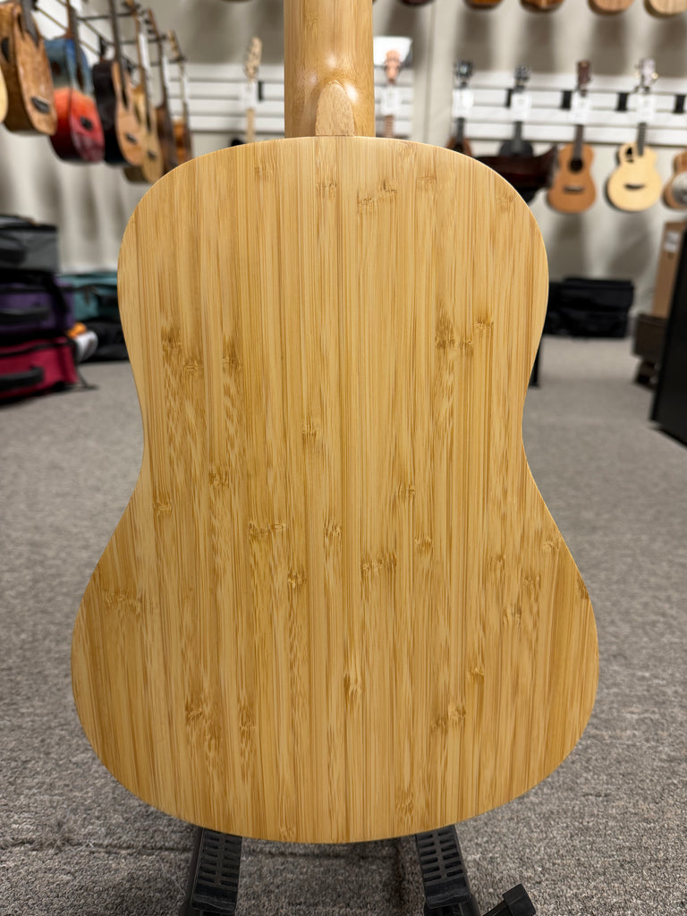 The Kala KA-BMB-B Bamboo Baritone Ukulele is a striking fusion of sustainability and superior sound. Crafted entirely from solid bamboo—top, back, sides, neck, and fingerboard—this instrument stands out for its eco-friendly materials and resonant tone. Bamboo's straight grain and layered structure not only provide a natural, earthy aesthetic but also contribute to a bright, clear sound with excellent volume, projection, and sustain.