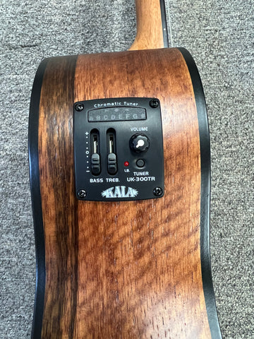 Equipped with Kala's UK-300TR electronics, this ukulele is ready for amplification, making it suitable for live performances and studio recordings. The built-in tuner and EQ controls offer convenience and versatility, allowing you to fine-tune your sound on the go.