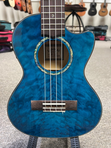 LANIKAI QM-BLCET Quilted Maple Electric Tenor Ukulele w/Case - Transparent Blue