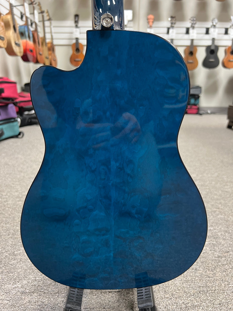 LANIKAI QM-BL-CEB Quilted Maple Electric Baritone Ukulele w/Case - Transparent Blue