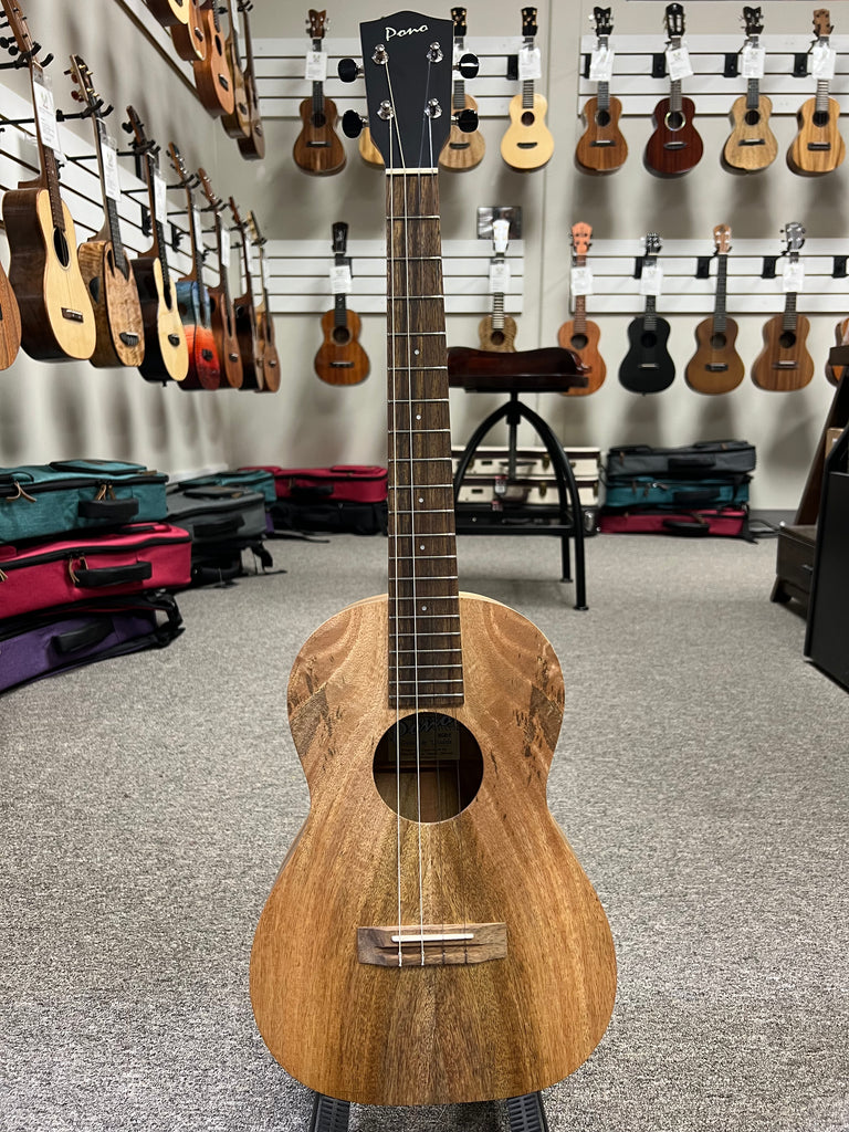 Aloha City Ukes is happy to be carrying Pono ukuleles. These are very high quality ukuleles made under the Ko'olau name with their designs. The MGB-K Baritone is an all solid mango wood baritone ukulele with a satin finish. The tone is sweet and the playability is great. The Pono tenor and baritone ukuleles also come equipped with a dual action truss rod which makes it easy to adjust the neck as the climate changes. Aloha !!