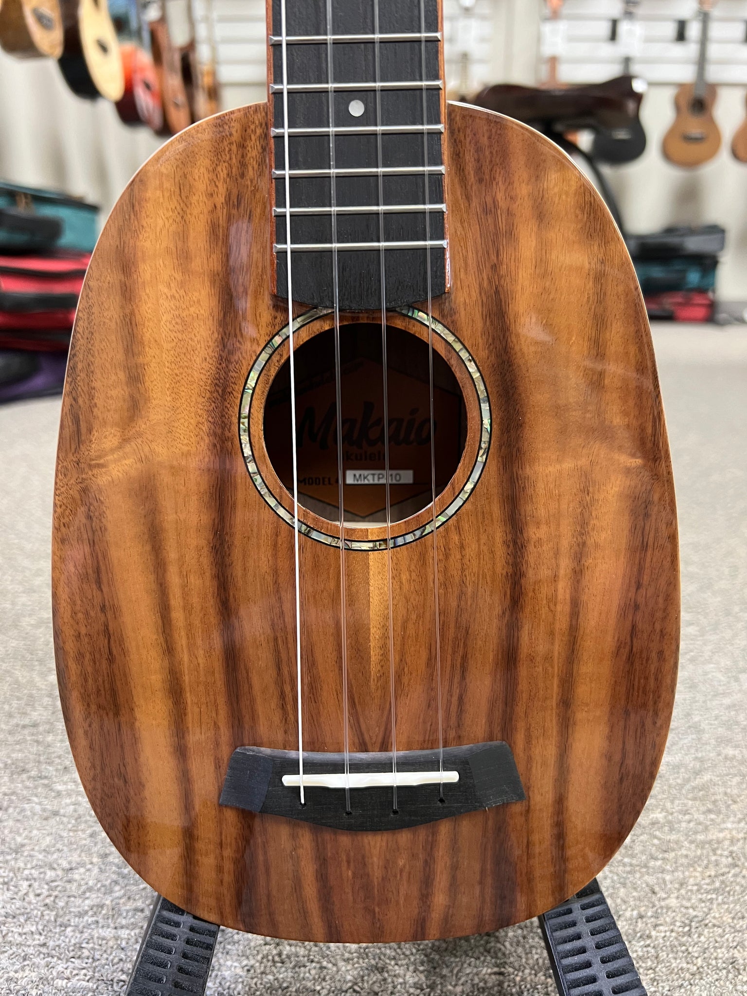 Included Accessories: Comes with a padded gig bag for protection and portability, and a strap button for added playing comfort. Whether you're a beginner or an experienced player, the Makaio MKTP-10 offers a unique and enjoyable playing experience. Its distinctive shape, quality materials, and thoughtful design make it a standout choice for those seeking an affordable yet high-quality ukulele.