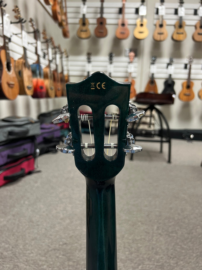 This is one AMAZING looking ukulele. The trans blue finish over the quilted maple with all of the abalone is spectacular and the slotted headstock adds a nice touch of class as well. It plays like butter and comes with a Fishman EQ and built-in tuner so you're ready to plug in and always be in tune. Comes with a Lanikai Deluxe Case. Aloha !!