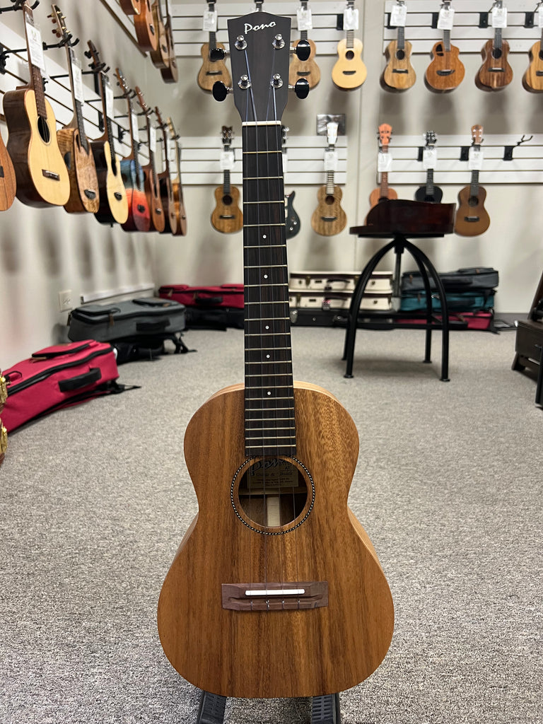 Aloha City Ukes is happy to be carrying Pono ukuleles. These are very high quality ukuleles made under the Ko'olau name with their designs. The AT-Tenor is an all-solid acacia wood tenor ukulele with a satin finish. The tone is sweet and the playability is superb. The Pono tenor and baritone ukuleles also come equipped with a dual-action truss rod which makes it easy to adjust the neck as climates change. Aloha !!