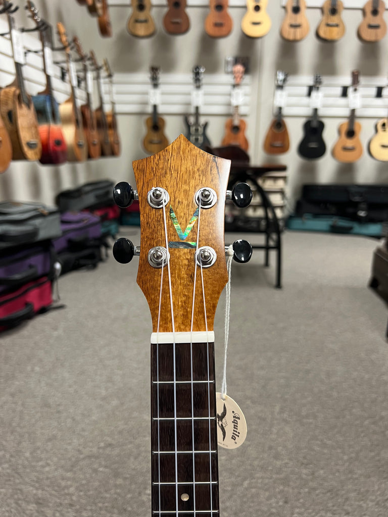 What a great looking ukulele from KUMU. Featuring a thin body made out of Hawaiian koa wood. It also has abalone inlays around the soundhole and headstock. Black binding and tuning machine keys add a nice touch of class.
