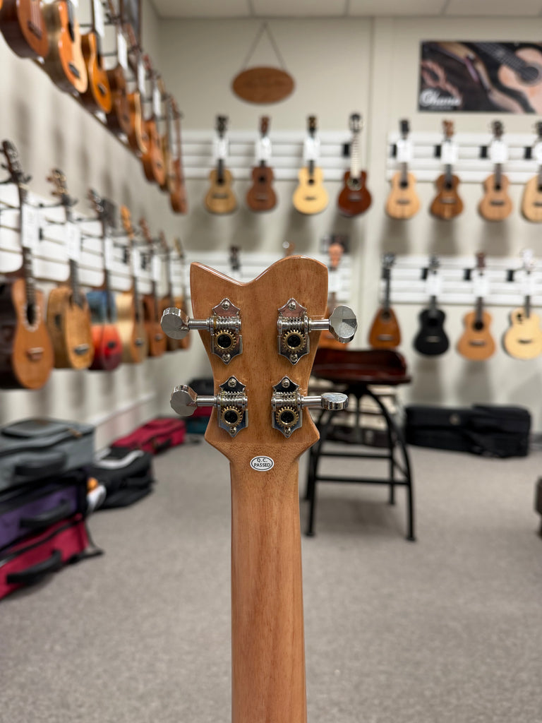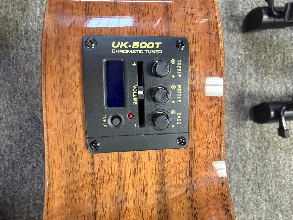 The MKBXS-10E features a koa body, known for its striking grain patterns and warm, resonant tone. Its mahogany neck complements the body, providing a smooth and comfortable playing experience. The ebony bridge and fingerboard add to its aesthetic appeal and contribute to its rich sound quality. The ultra-thin gloss finish not only enhances its visual appeal but also allows the natural tone of the wood to shine through. The dual action truss rod means you can adjust the action if need be.