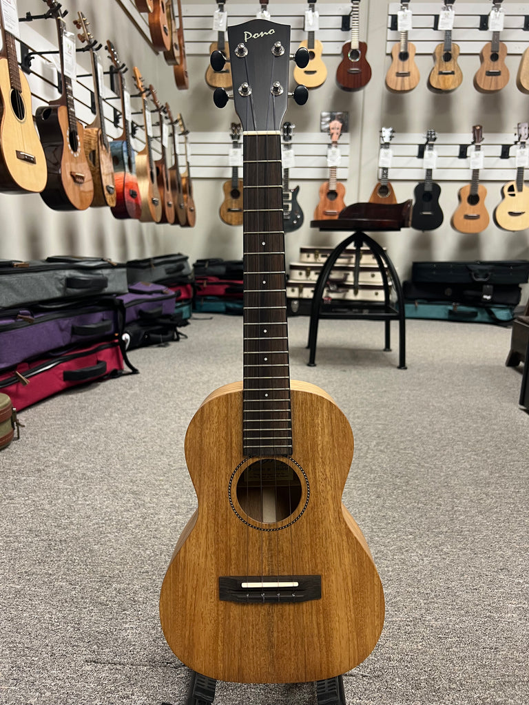 Aloha City Ukes is happy to be carrying Pono ukuleles. These are very high quality ukuleles made under the Ko'olau name with their designs. The AT-Tenor is an all-solid acacia wood tenor ukulele with a satin finish. The tone is sweet and the playability is superb. The Pono tenor and baritone ukuleles also come equipped with a dual-action truss rod which makes it easy to adjust the neck as climates change. Aloha !!