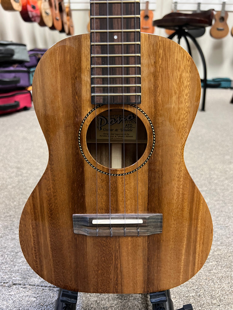 Aloha City Ukes is happy to be carrying Pono ukuleles. These are very high-quality ukuleles made under the Ko'olau name with their designs. The ATD-Tenor is an all-solid acacia wood tenor ukulele with a gloss finish. The tone is sweet and the playability is great. The Pono tenor and baritone ukuleles also come equipped with a dual-action truss rod which makes it easy to adjust as climates change. Aloha !!