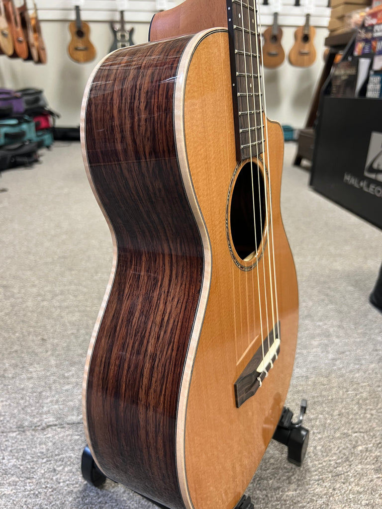 PONO ULNC4-4 Solid Cedar/Rosewood Nylon String Baritone Ukulele w/Case - Cutaway