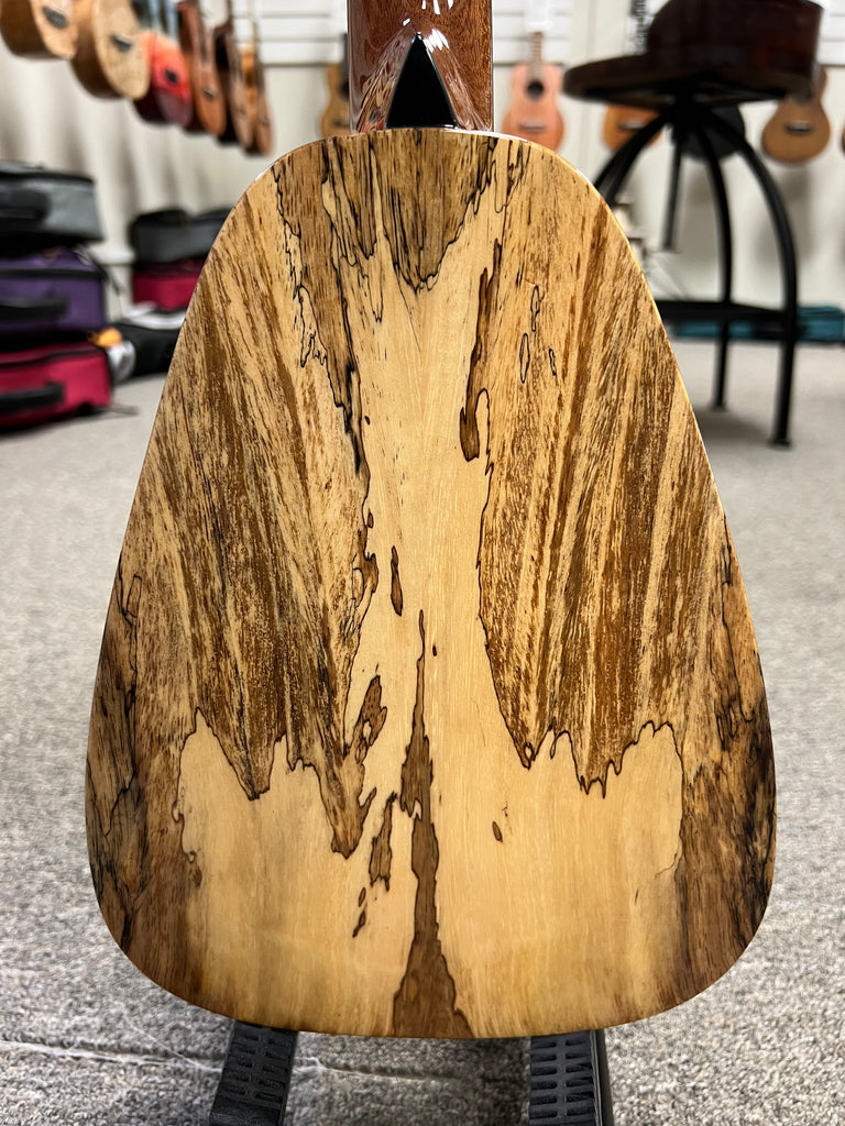 The Romero Creations Tiny Tenor is conceptualized by Grammy award-winning ukulele virtuoso Daniel Ho and master luthier Pepe Romero, the Tiny Tenor is a tenor scale ukulele built to the length of a concert ukulele, maximizing portability without compromising sound. It's really an amazing instrument in looks, tone and portability. This one is made out of premium solid spalted mango wood and it looks and sound amazing! Comes with a nice Romero Creations case.