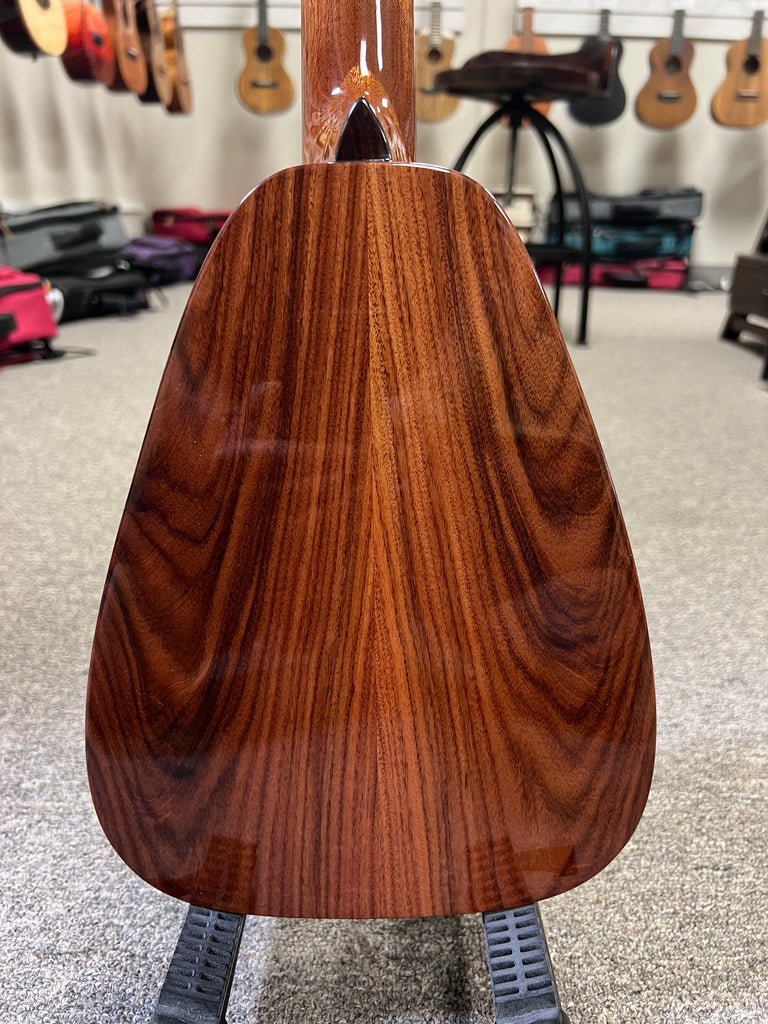 The Romero Creations Tiny Tenor is conceptualized by Grammy award-winning ukulele virtuoso Daniel Ho and master luthier Pepe Romero. The Tiny Tenor is a tenor scale ukulele built to the length of a concert ukulele, maximizing portability without compromising sound. It's really an amazing instrument in looks, tone and portability. This is a limited edition model made from solid Spruce and solid Pau Ferro. Comes with a nice Romero Creations case. Aloha!