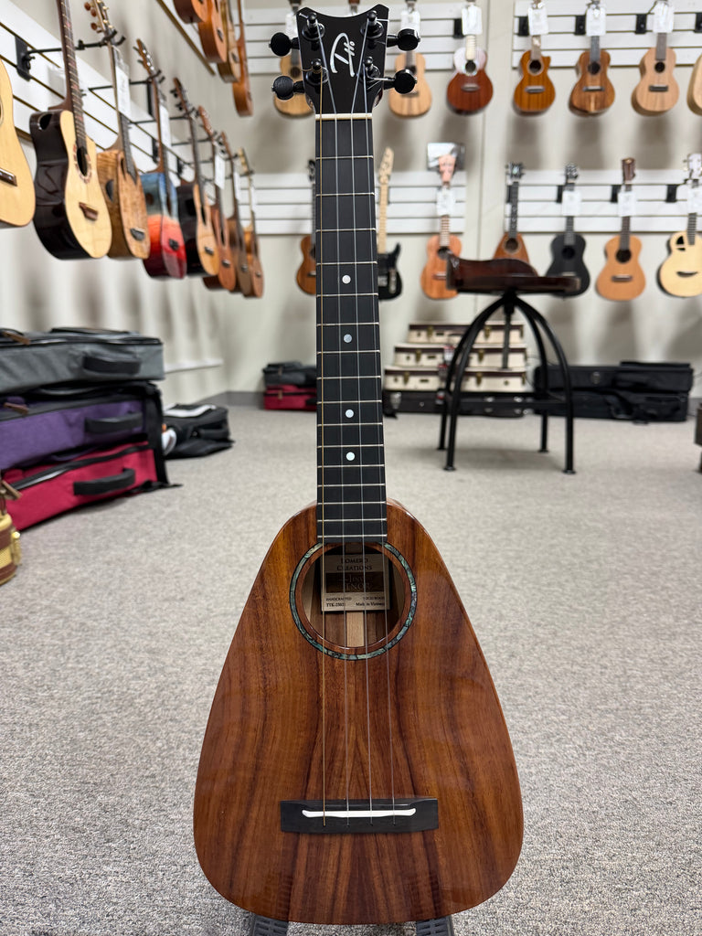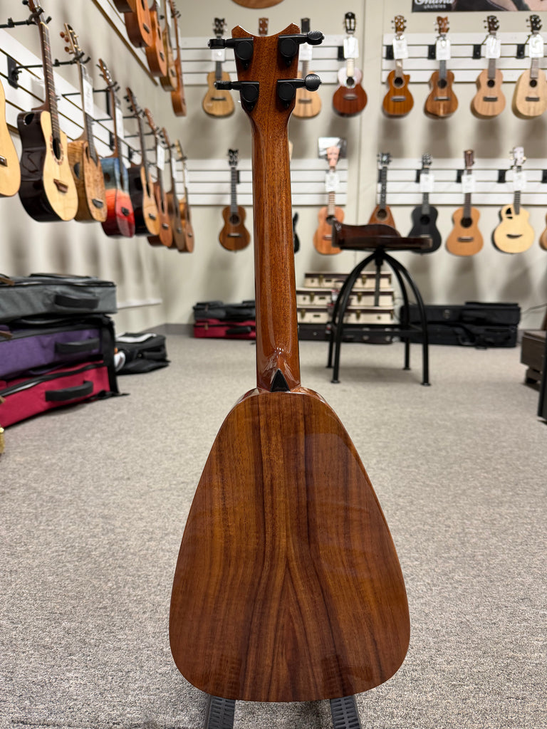 The Romero Creations Tiny Tenor is conceptualized by Grammy award-winning ukulele virtuoso Daniel Ho and master luthier Pepe Romero. The Tiny Tenor is a tenor scale ukulele built to the length of a concert ukulele, maximizing portability without compromising sound. It's really an amazing instrument in looks, tone and portability. This one is made out of premium solid koa wood, the traditional wood used in Hawaiian ukulele making. Comes with a nice Romero Creations case. Aloha!