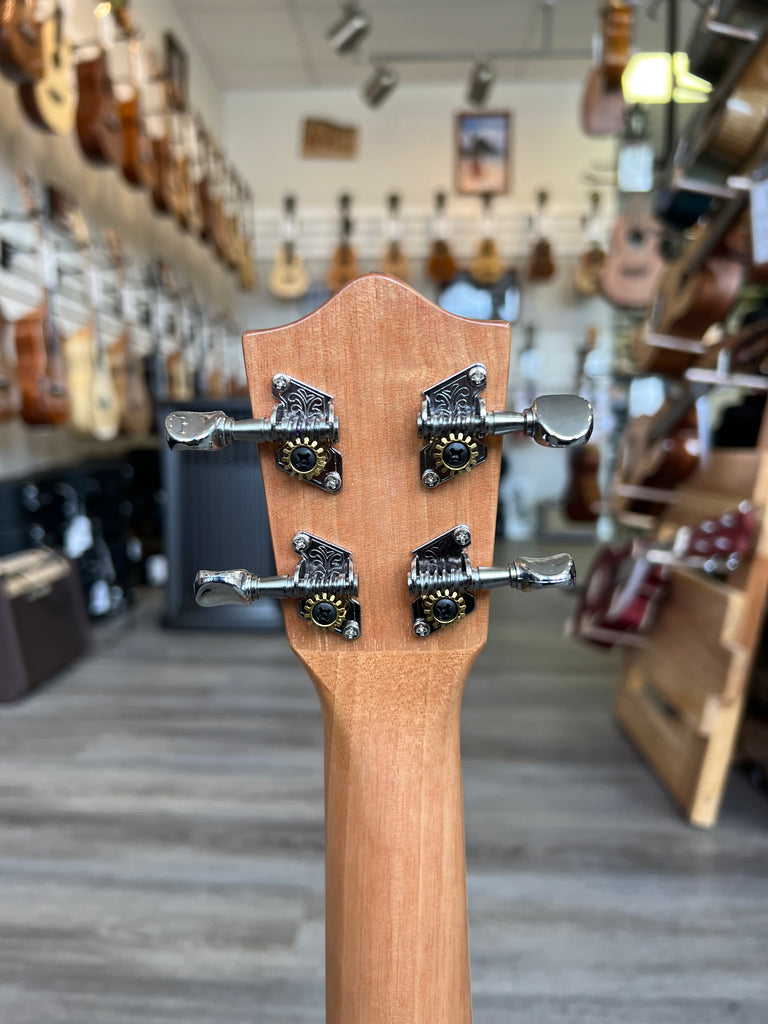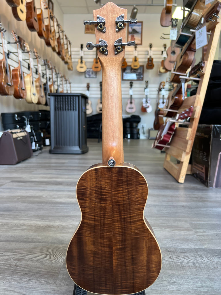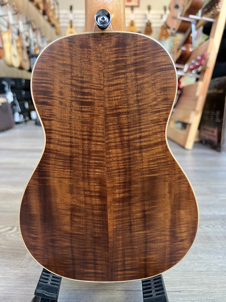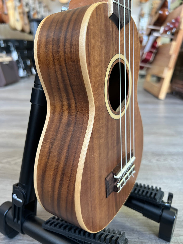This is one great looking and sounding uke! Featuring a solid acacia top with flamed maple binding. Comes with Lanikai padded case. Aloha !!