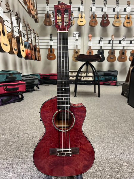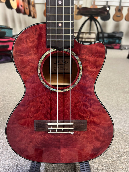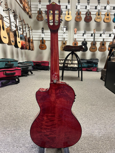 LANIKAI QM-RDCET Quilted Maple Electric Tenor Ukulele w/Case - Transparent Red