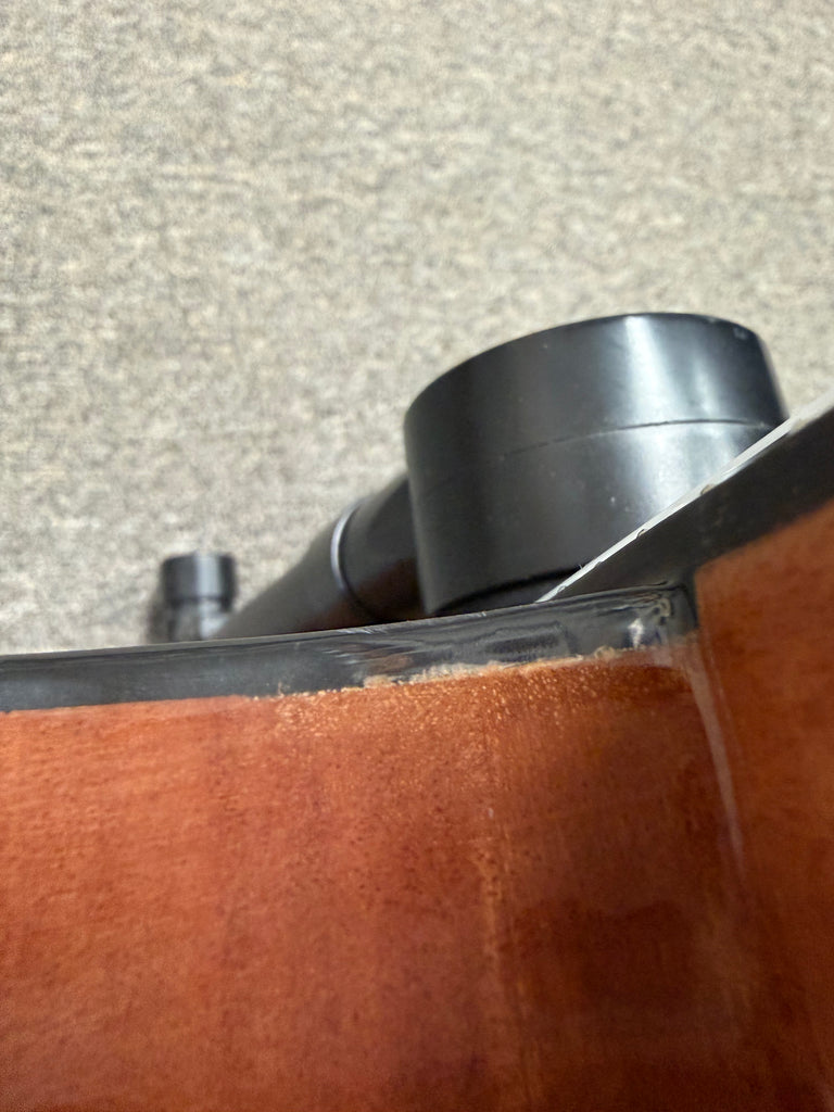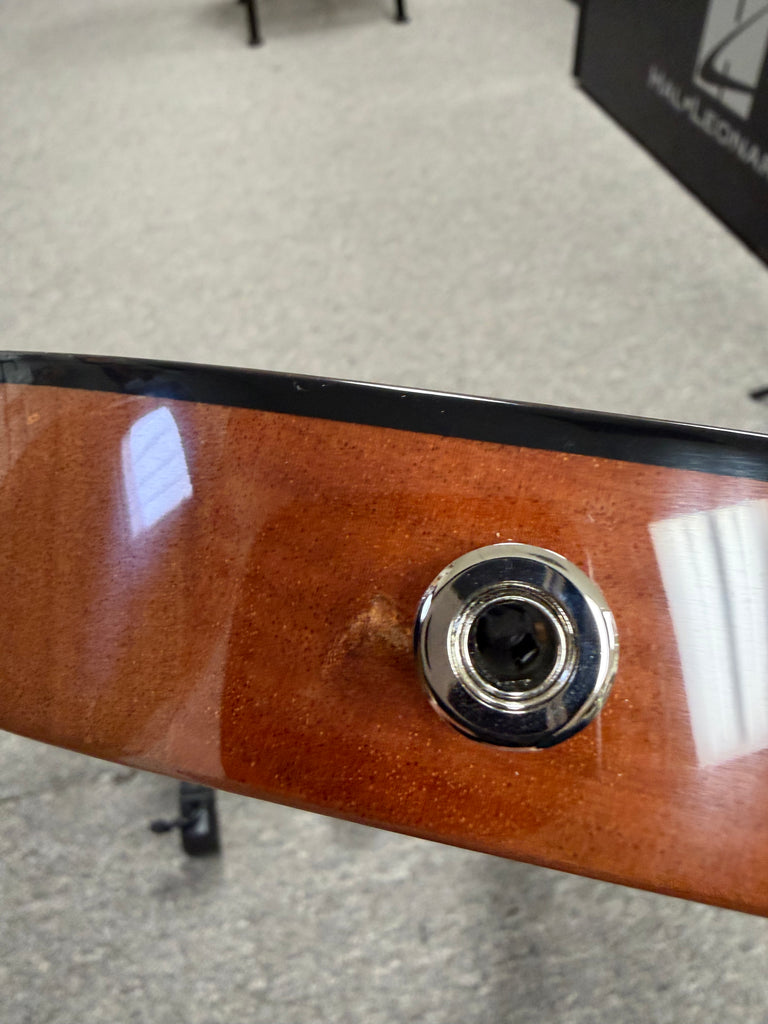 This is a B-Stock model as it has a couple of very minor finish flaws. One is by the cutaway where the area by the binding is not 100% perfect. The other is down by the input jack where there is a slight discoloration. Both of these are underneath the finish and can't be felt by your fingers.