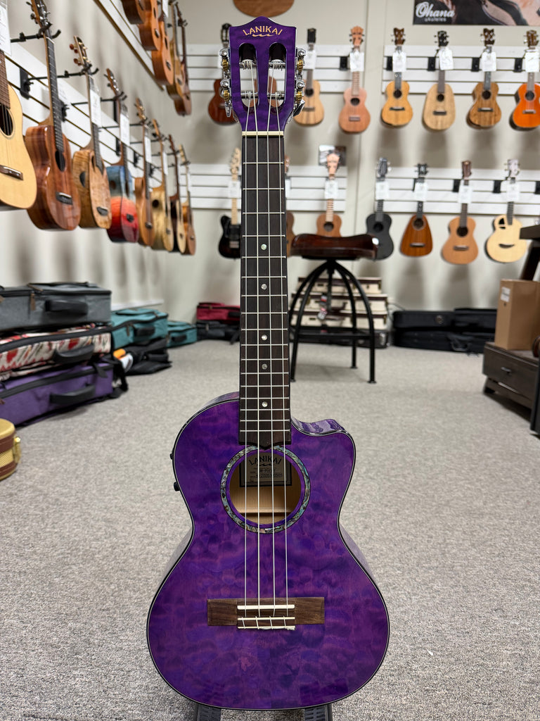 LANIKAI QM-PUCET Quilted Maple Electric Tenor Ukulele - Transparent Purple