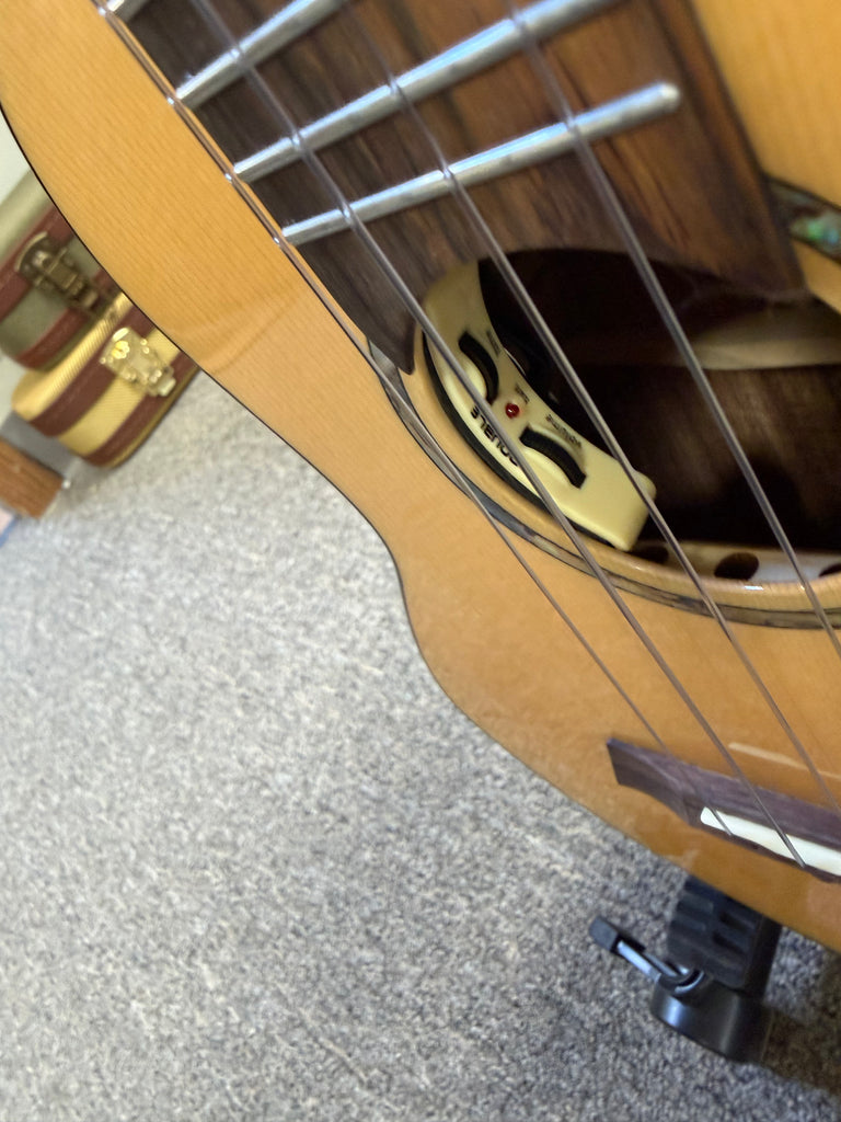 The Flight Voyager Concert is a stunning ukulele with a solid spruce top and solid acacia back and sides. It has a comfort edge for easy playing, a beautiful abalone rosette, and a unique headstock shape. It also includes a pickup so you are ready to plug and play. The Voyager’s punchy sound will leave you speechless, with a voice that is as beautiful as its high gloss finish.