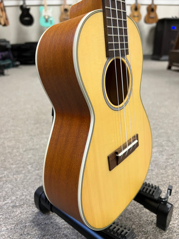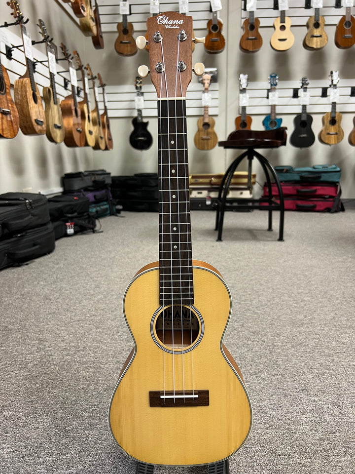 This Ohana concert uke boasts a solid spruce top with mahogany back and sides. It has a nice lively tone that really projects well. Aloha !!