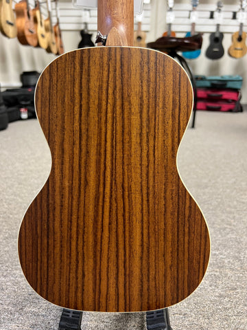 Nice solid top concert ukulele from Ohana. Featuring a solid spruce top with gorgeous rosewood back and sides. Its got a nice abalone soundhole inlay to go along with the classy looking slotted headstock. It has a satin finish for maximum tone and like all Ohana's, it plays great! Aloha !!