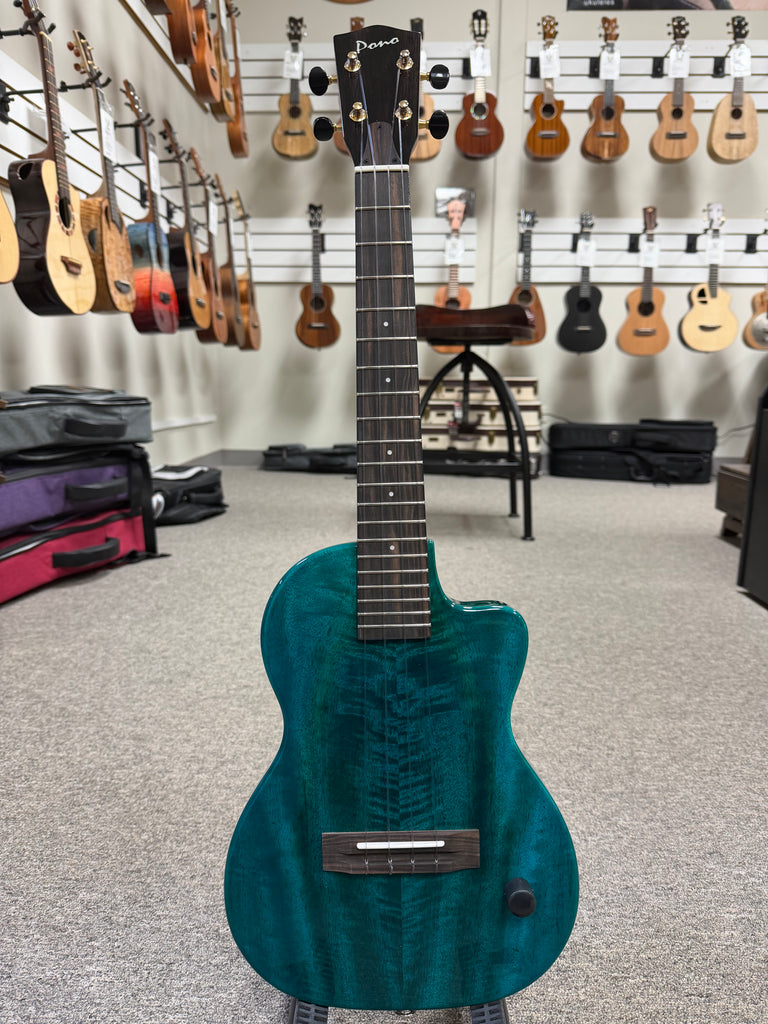 Pono TE-MDB Mango Deluxe Blue Tenor Electric Solid Body Ukulele