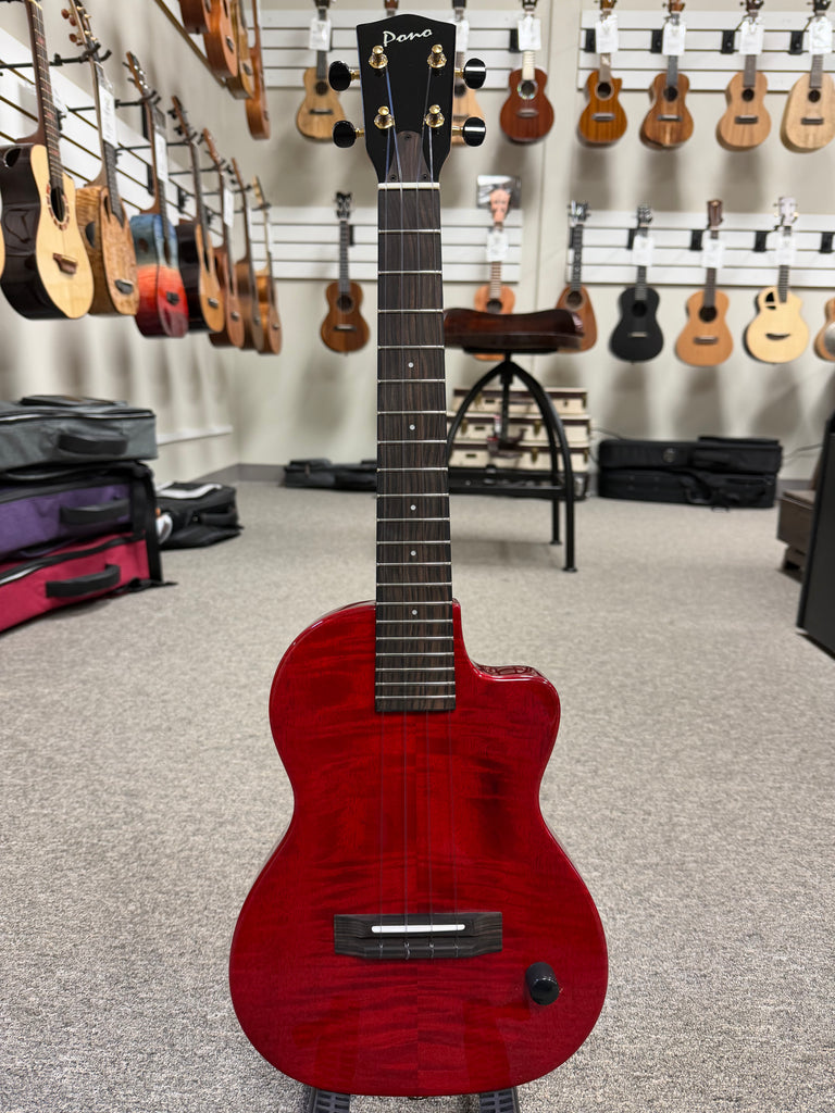Pono TE-MDR Mango Deluxe Red Tenor Electric Solid Body Ukulele w/Case