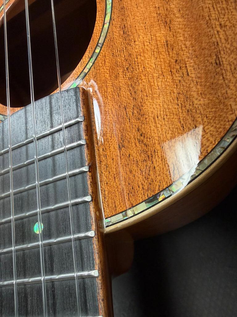 • Maple Binding and Abalone Inlays: The maple binding and abalone inlays around the body and soundhole add a touch of elegance to the ukulele's appearance.
