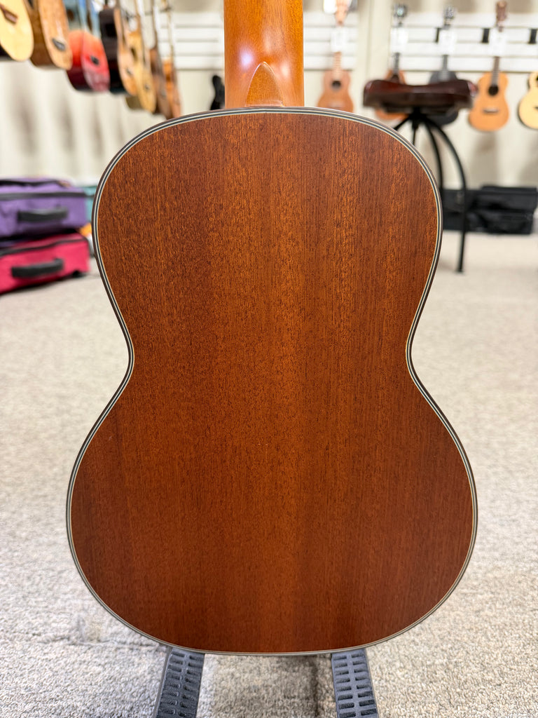 What a classy-looking tenor this is from Ohana. Featuring an all-solid mahogany body with wood binding for an extra touch of class. Nice full rich tone from the solid mahogany body.
