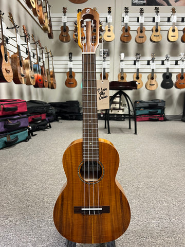 Really sharp looking solid wood tenor ukulele from Ohana. This beauty features a solid koa body with a satin finish and slotted headstock. The pattern in the wood is very visually striking and the abalone inlays add a nice touch of class. Aloha to that!