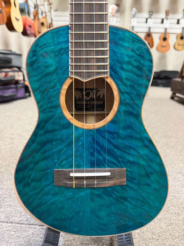Oli L2-TQM-BL Solid Quilted Maple Ocean Blue Tenor Ukulele w/Case