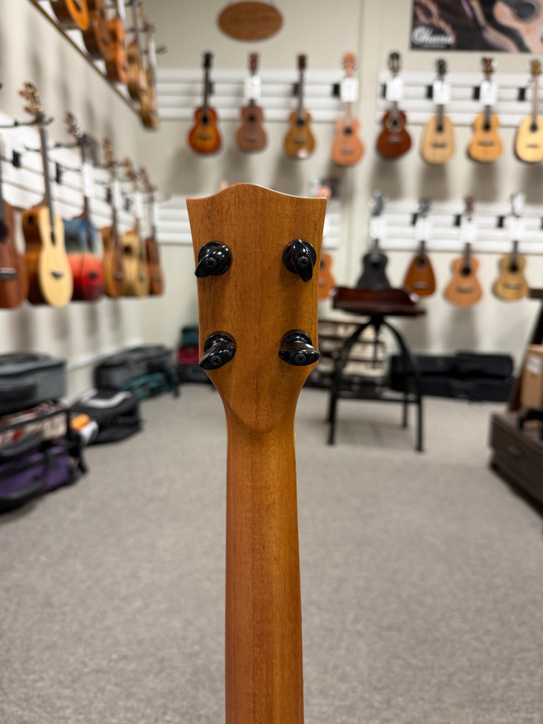 Beyond its looks, this tenor ukulele is designed for expressive, professional-level performance. An ebony bridge and radius fretboard enhance playability and precision, while advanced lattice bracing and a graduated top help produce a rich, resonant tone with clear projection and long, ringing sustain. Thoughtful features like a side sound port, arm bevel, and high-quality geared tuners add both comfort and tonal depth, making the instrument as enjoyable to hold as it is to hear.