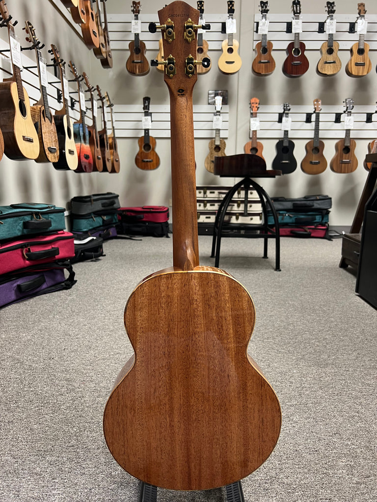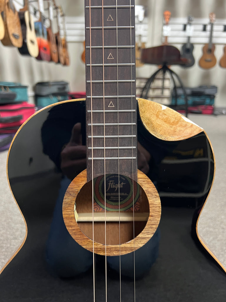 Designed with both aesthetics and functionality in mind, the Nora features a beautiful mango scalloped cutaway, allowing effortless access to higher frets without sacrificing volume or tone. Complementing its refined look, the instrument boasts an Indian rosewood fingerboard, mango binding and rosette, and Flight’s custom golden machine heads for a premium touch and smooth tuning experience.