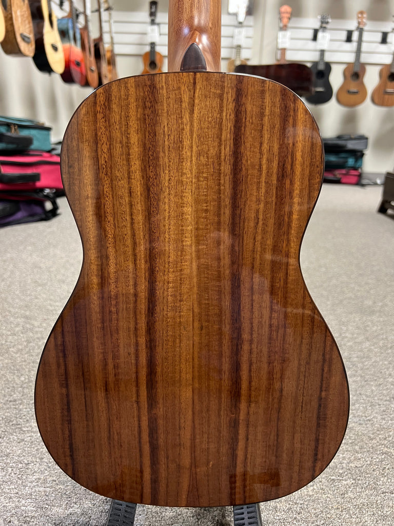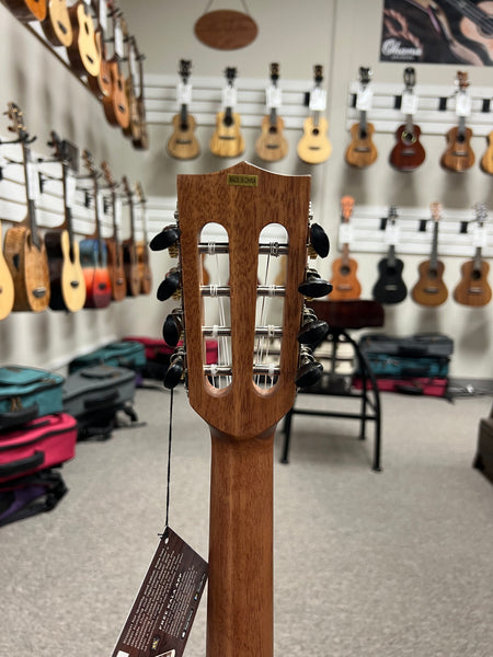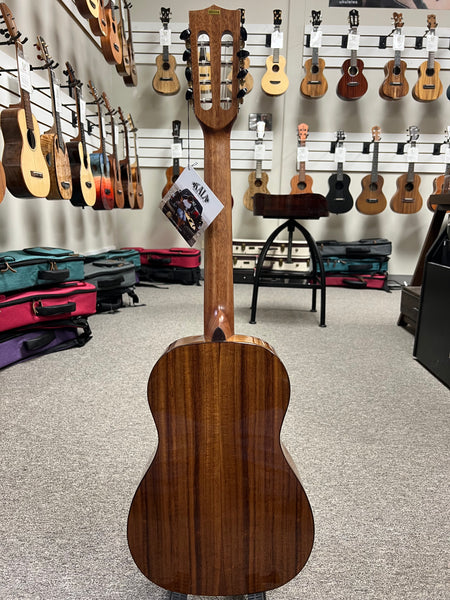 The ukulele's unique 8-string setup—tuned d-D-g-G-b-b-e-e—offers a lush, chorus-like effect, enriching both strumming and fingerstyle techniques. Equipped with Aquila Super Nylgut® strings, it delivers a bright and full sound, making it an excellent choice for stage performances. The Graph Tech NuBone® nut and saddle, along with chrome inline tuners, provide precise tuning stability.
