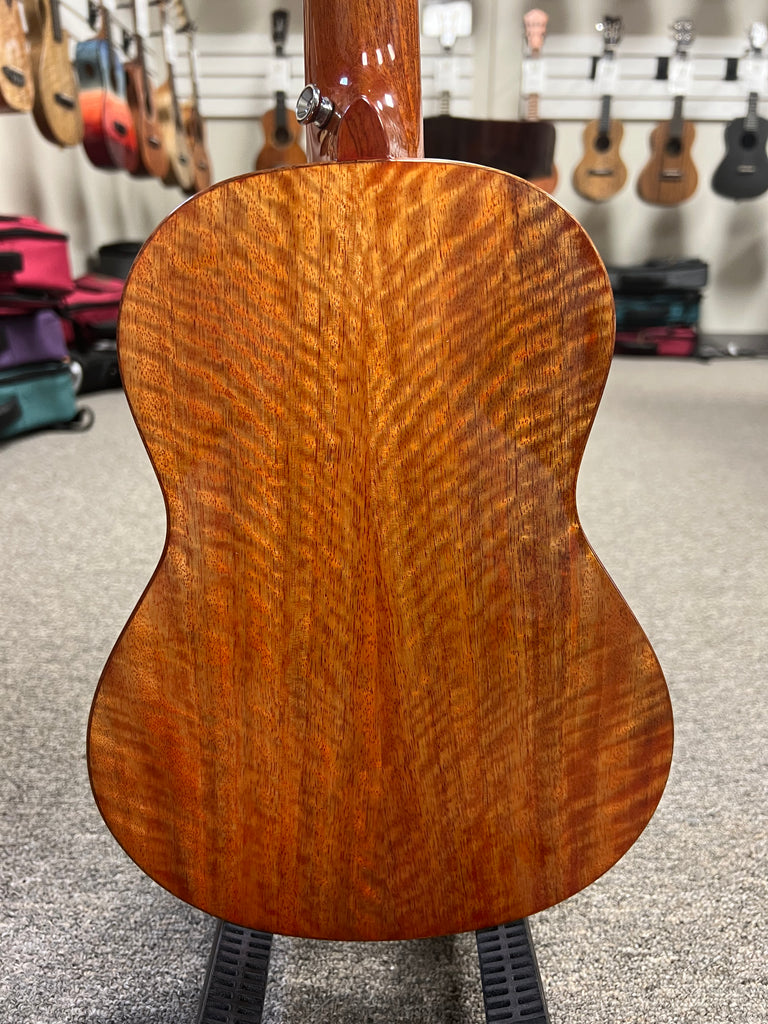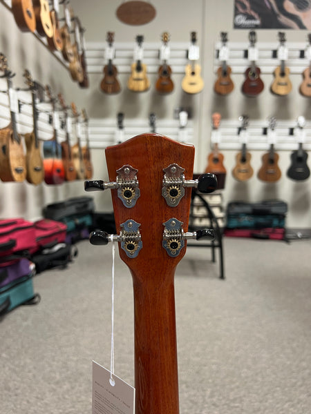 New for 2025!! This gorgeous all solid mango wood tenor has mahogany binding around the body and a comfort contour armrest for smoother playing. It also has abalone around the sound hole and headstock and comes with 2 strap buttons.