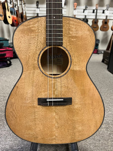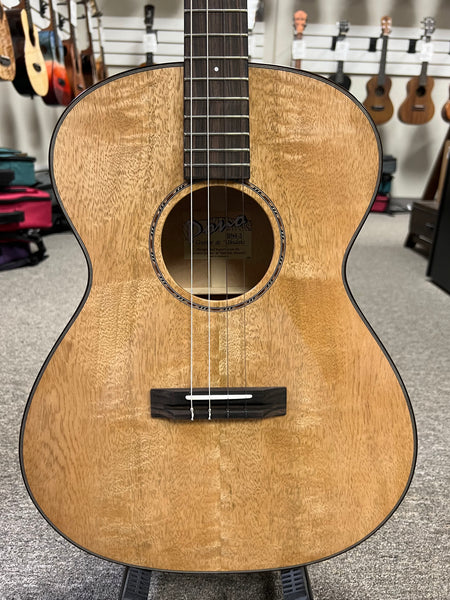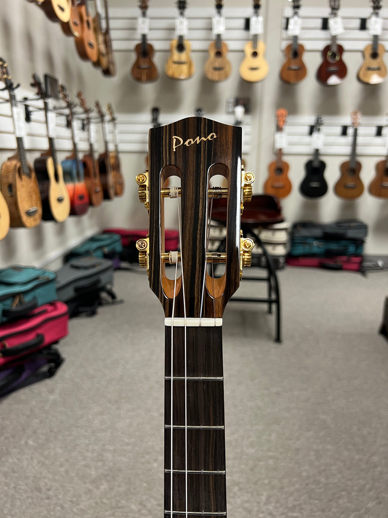 This big body baritone ukulele from Pono is really an amazing instrument. It's basically a tenor guitar that is set up with nylon strings and tuned D G B E. The large solid mango body provides a big, warm beautiful sound while the nylon strings are nice and easy on the fingers. Comes with a nice Pono padded case.