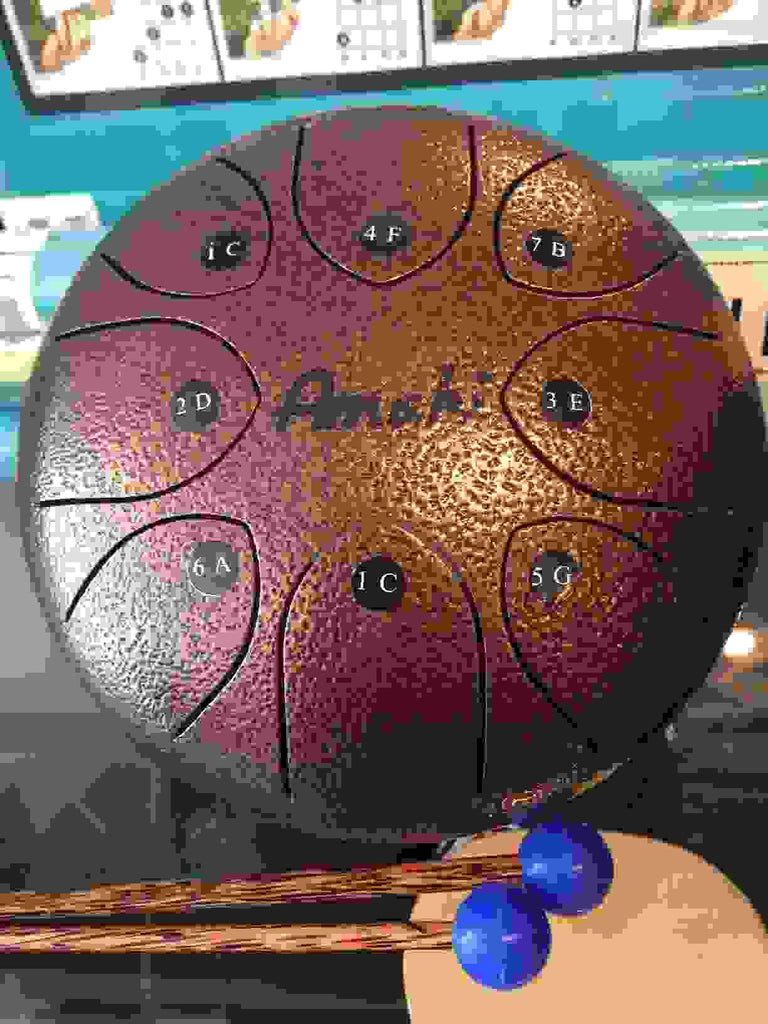 Very very cool sounding steel tongue drums. They are labeled with the different notes which makes it super easy to play. Comes with a nicely padded carrying case and 2 mallots to play with. Amahi steel tongue drum bronze 8".