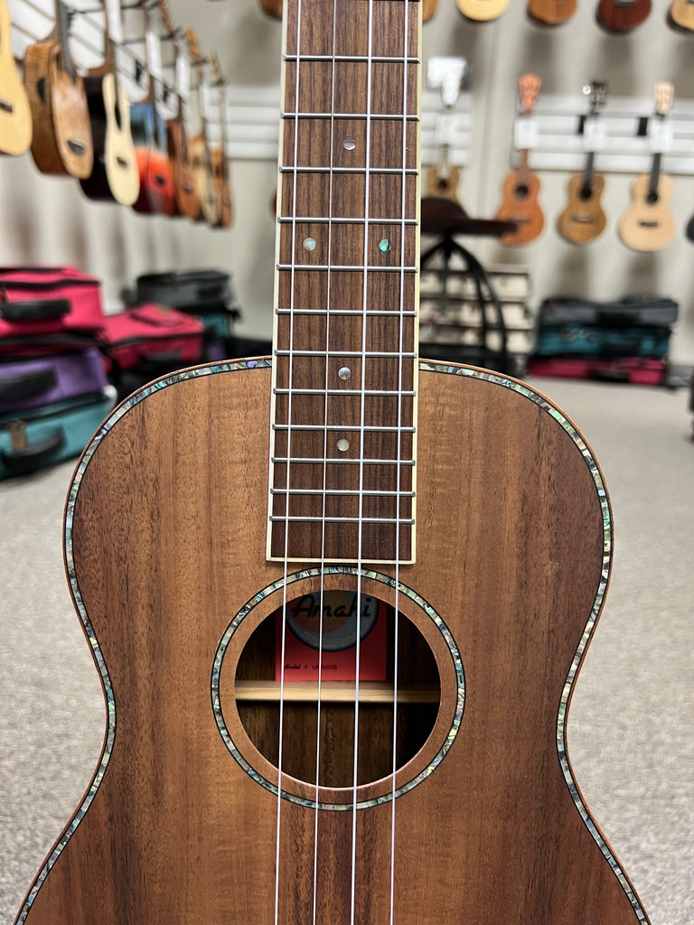 When it comes to ukuleles, Koa is king. Just ask King Kamehameha! Koa is what the traditional Hawaiian ukes were made from back in the day and it's still the preferred wood for many ukulele enthusiasts, and for good reason! This Amahi baritone ukulele has some nice light Koa wood that when paired with the abalone inlays looks super classy. It also boasts a nice warm and lively tone sure to make you smile. Comes with an Amahi gig bag.