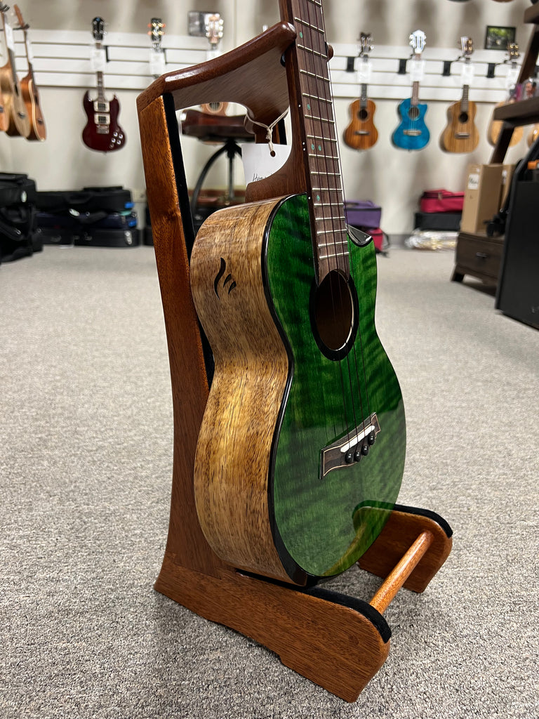 Custom made in the USA from some gorgeous Hickory wood. Proudly and securely show off your ukulele with style. Soft felt safely protects the uke.
