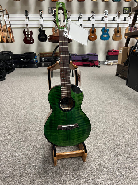 Custom made in the USA from some gorgeous South American Mahogany wood. Proudly and securely show off your ukulele with style. Soft felt safely protects the uke.