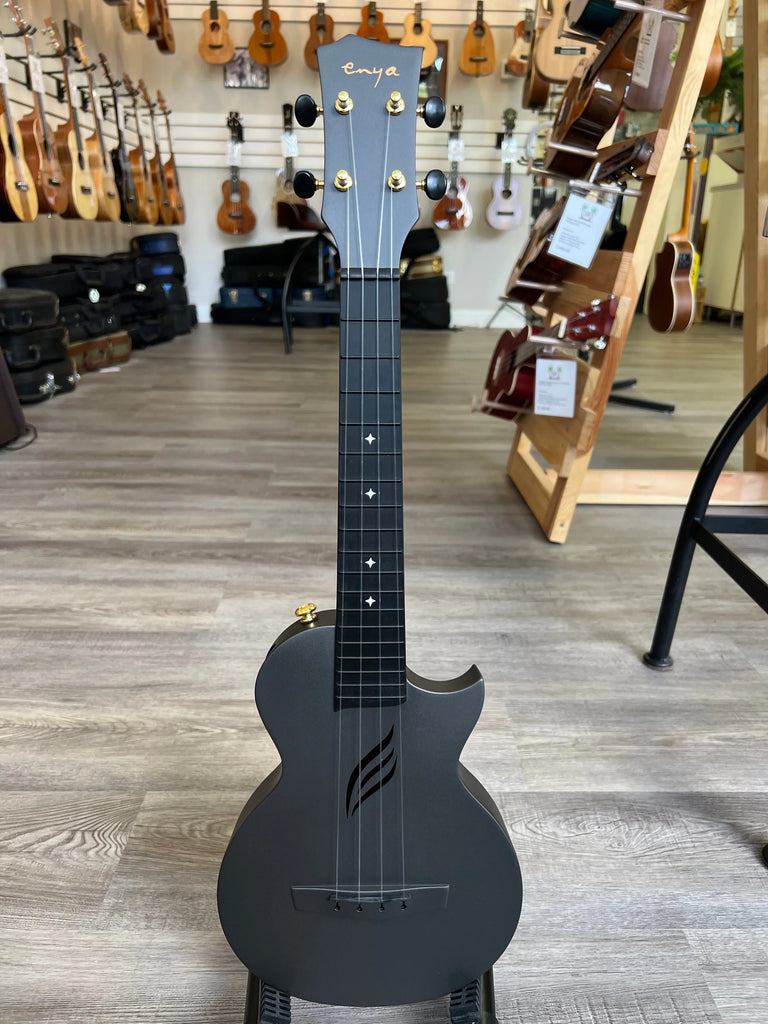 Very cool concert uke from the good folks at Enya. This is a carbon fiber/ polycarbonate uke so you don't have to worry about heat, cold or humidity as it is not affected by those.