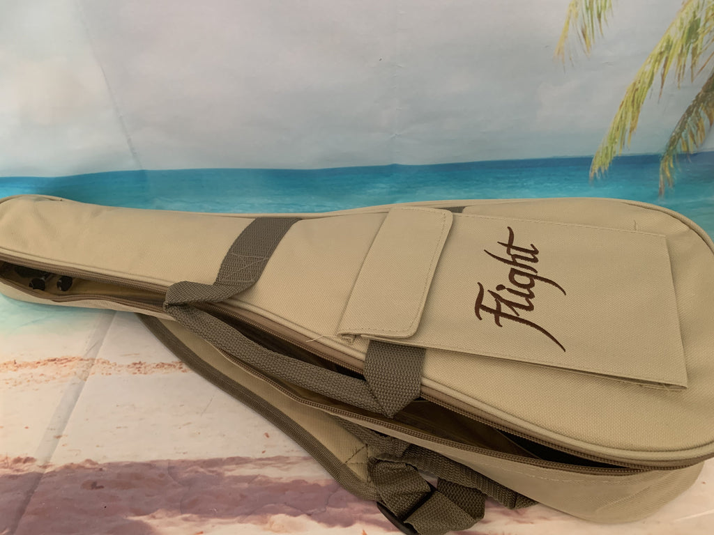Great electric concert ukulele from Flight. This one features a Mahogany body with a cool sound hole design. Geared tuners help keep it in tune nicely while the cutaway allows easy access to the upper frets. The built in pickup with EQ and Tuner make it stage ready. Comes with a Flight carrying bag.