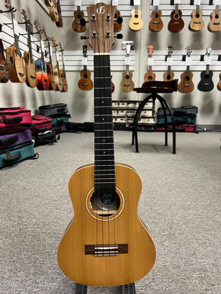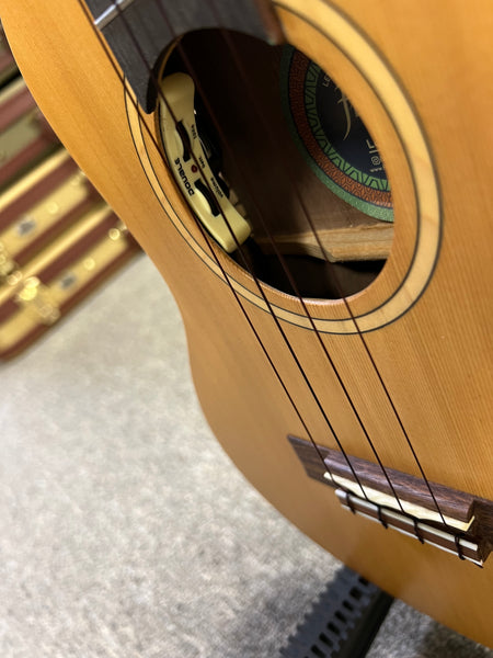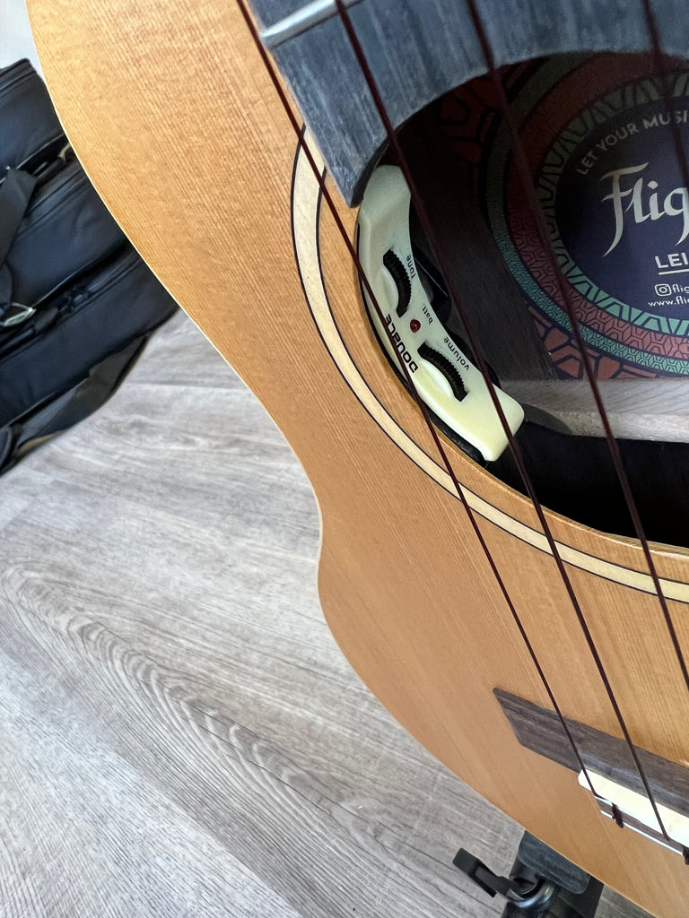 This model comes with Double brand B1U pickup installed. These pickups are highly regarded for their ease of use, simple tone and volume control. Designed for ukuleles, the controls are mounted inside the lip of the sound-hole for quick and easy changes with quality precision. Battery changes are quick, with no need for unsightly battery blocks that add unnecessary weight and bulk to the ukulele. The Double B1U will ensure an active dynamic control of your ukulele and a peace of mind when you’re performing on stage