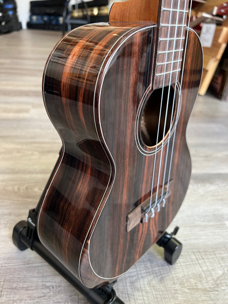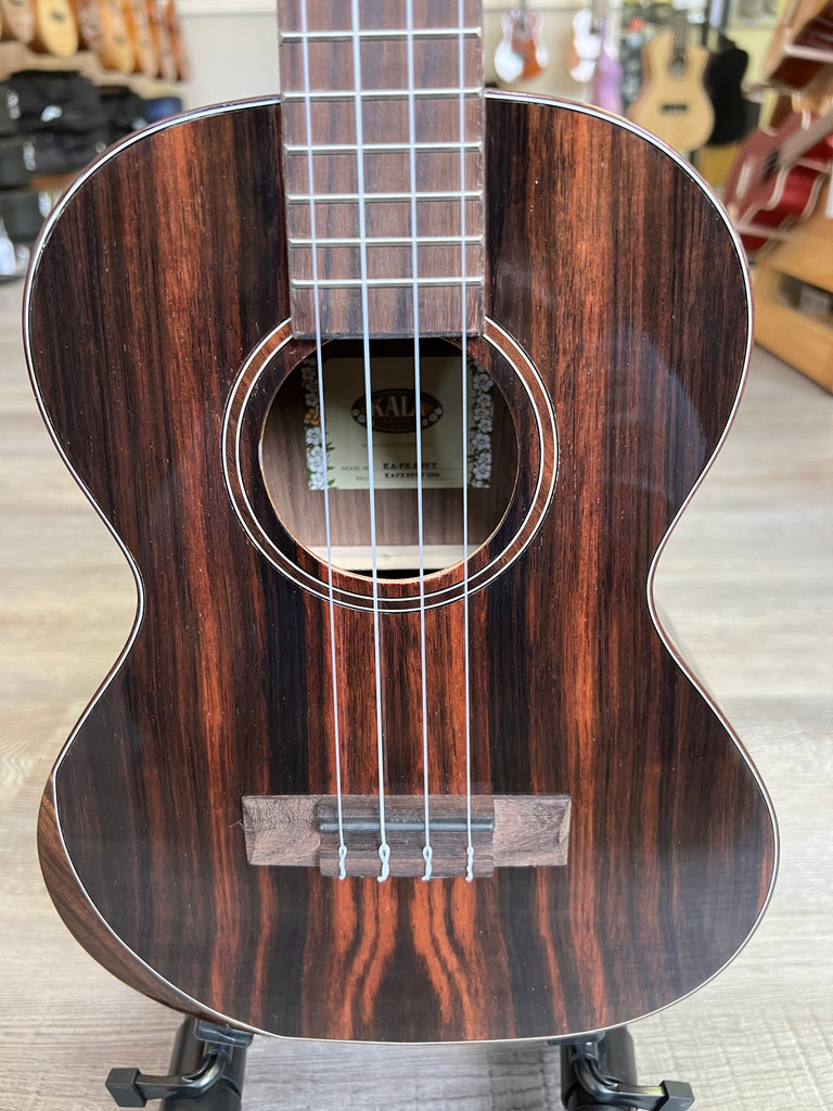 These new Kala Premier Exotic series ukuleles are really amazing. The gorgeous dark ebony wood just oozes with class and distinction. It also provides a nice rich tone that combined with the nice low action make this uke a joy to play. The PX models also have a comfort contour on the top of the uke that makes it super smooth on your arm. You'll want to keep playing this beauty for hours and you'll be staring at it when you're not playing it. Aloha !!