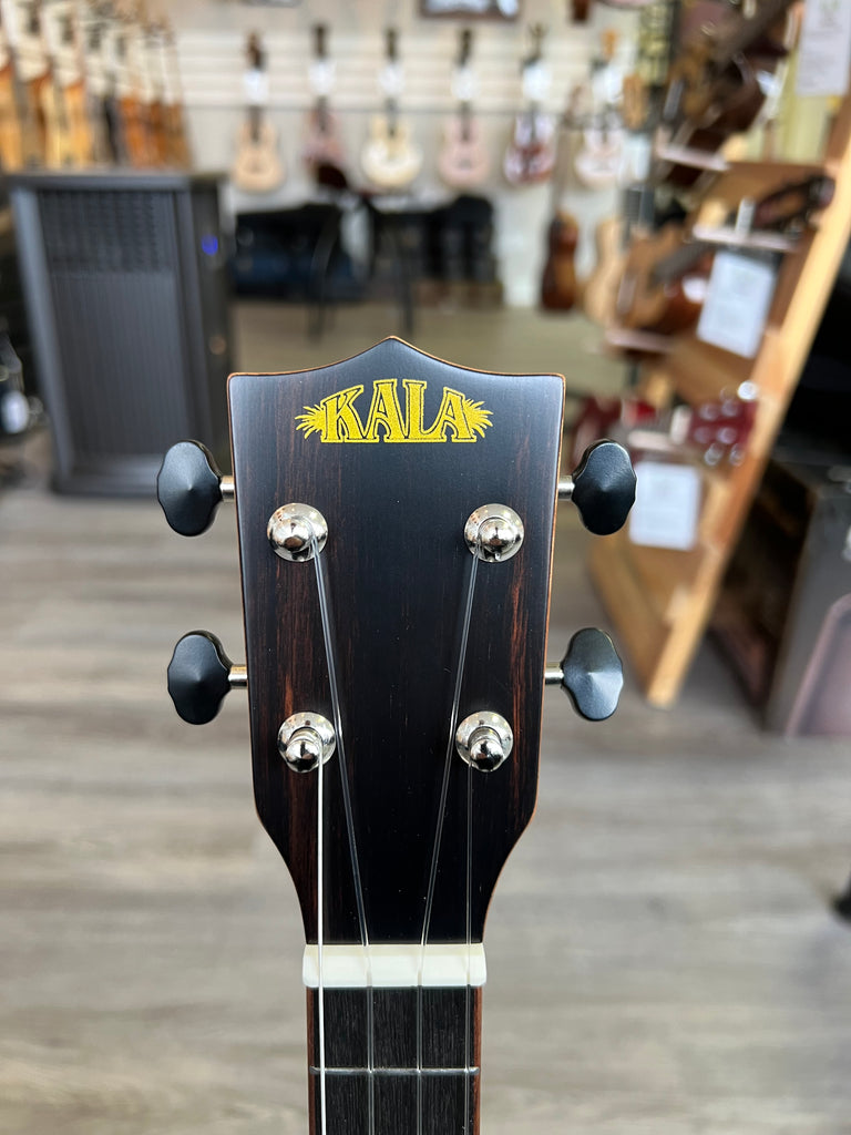 The performer’s dream, the all-new Kala Solid Body Electric Ukulele brings a brand new dimension to the world of ukulele recording, studio use, and amplified play. With the same traditional playability, light tension feel, and classic ukulele tone as the best of our acoustic offerings, this new Kala collection utilizes a fully-solid body design and powerful pickup to create the ideal instrument for performers across genres.