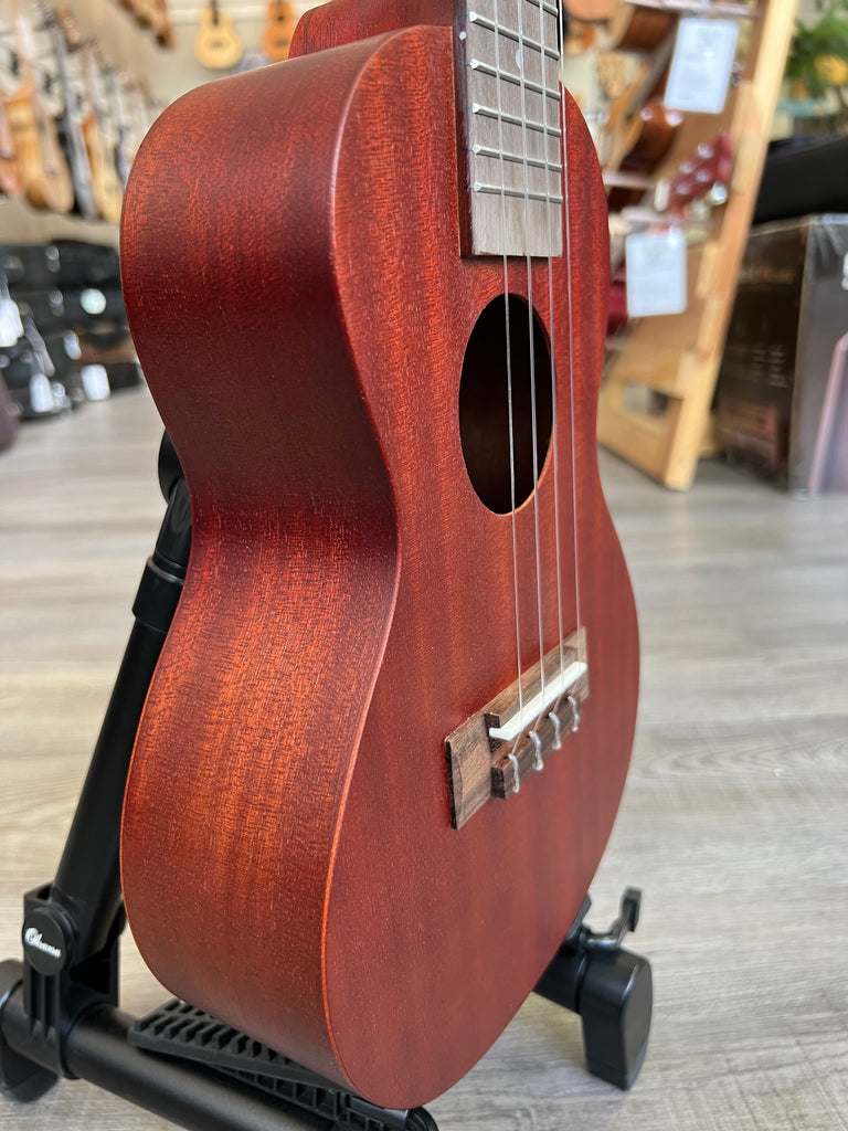 The Kiwaya KC-1 is an amazing little uke. It's part of their Student Series which means they use a super-thin laminated mahogany for the body. It's very reminiscent of the old Martin ukes. Super lightweight and easy to play. Aloha to that!!