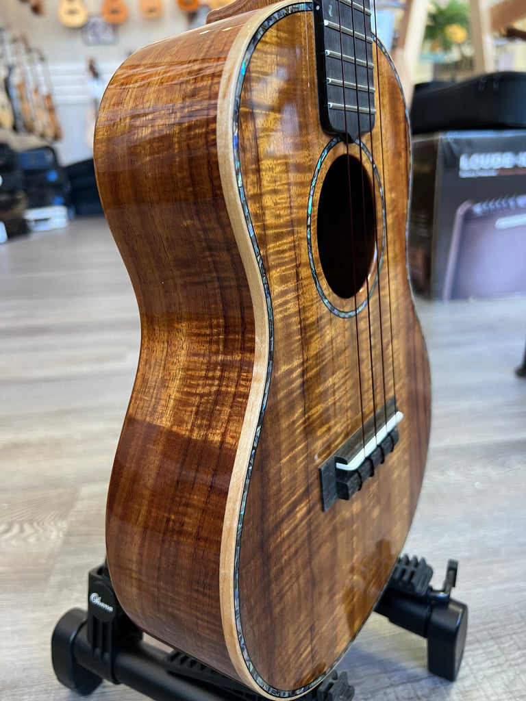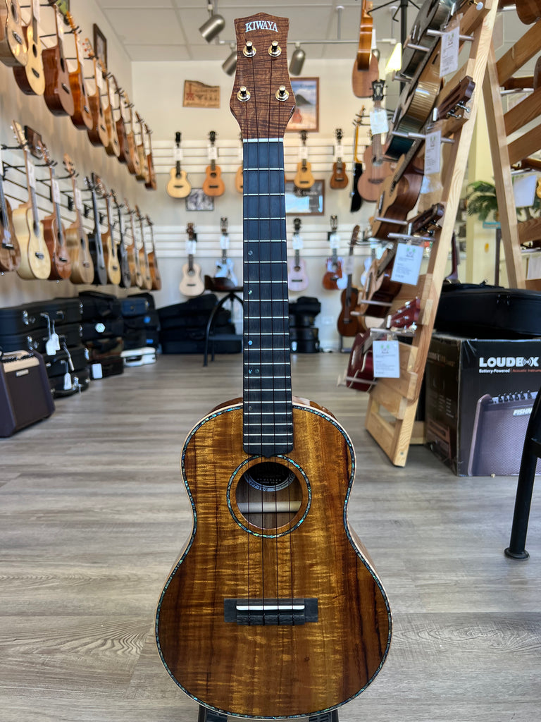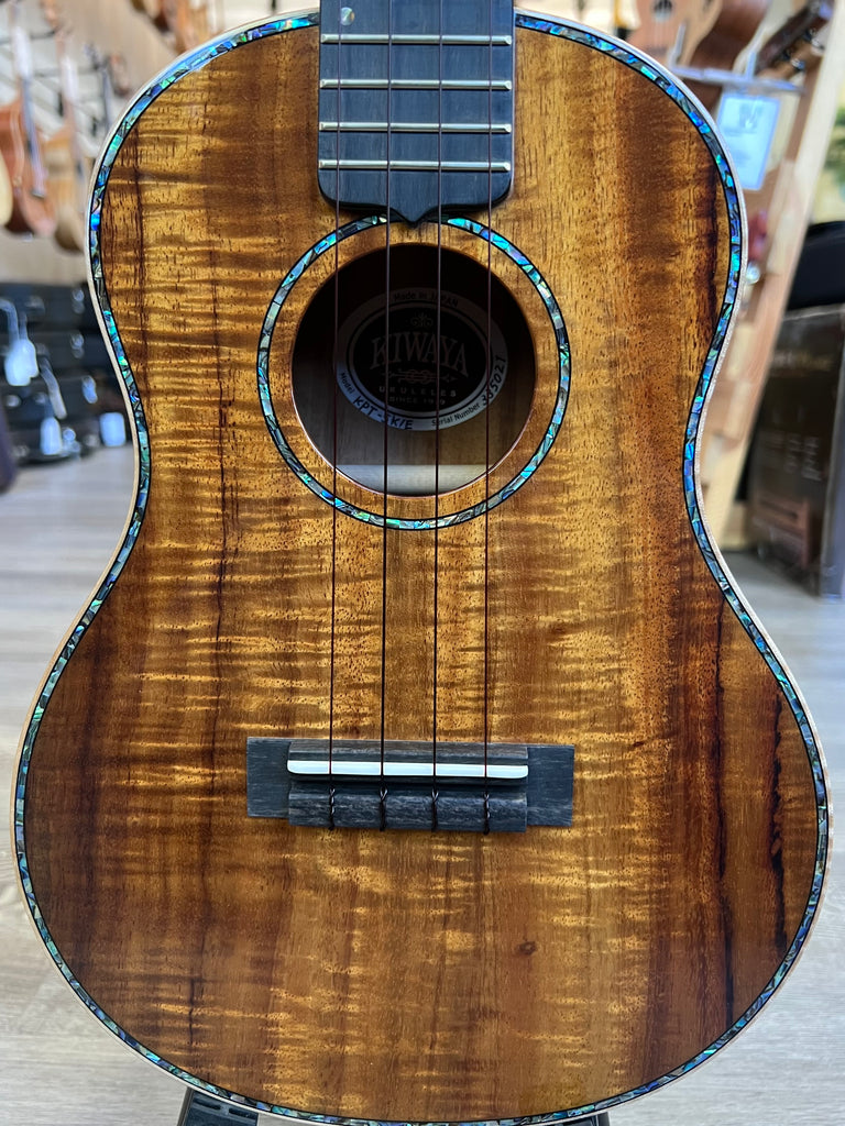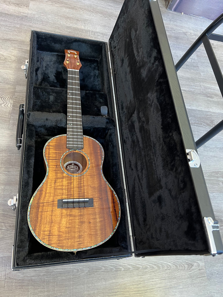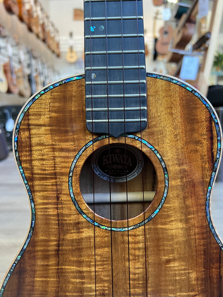 The Kiwaya KPT-5K is an amazing all solid koa wood ukulele made from Grade 5A Curly Koa. Maple binding and abalone around the body and soundhole add to the classiness of this uke. Super lightweight and easy to play with a great natural tone. Made with precision in Japan. Aloha to that!!